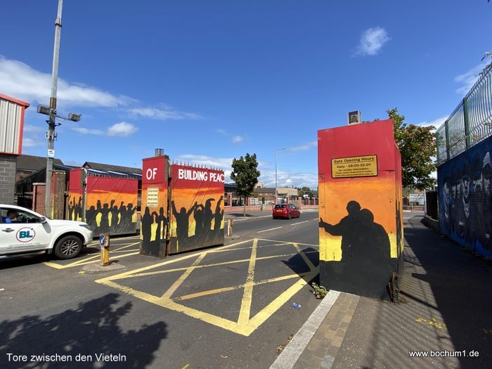 Mauer, welche die Briten von den Irischen Bewohnern trennt. Die unteren
