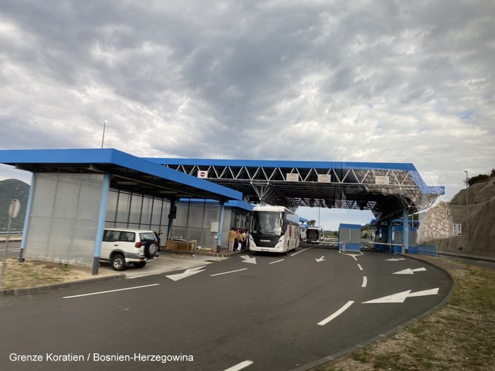 Seite sitzt). Dann erreichten wir die Grenze zu Bosnien-Herzegowina und