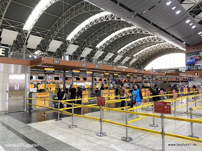 der Pegasus-Schalter, wo wir als zweite Passagiere des Fluges unseren