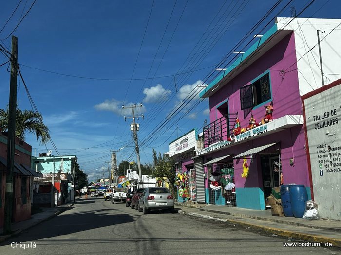 Landstraße bis zum kleinen Ort Chiquilá, wo wir unser Fahrzeug auf