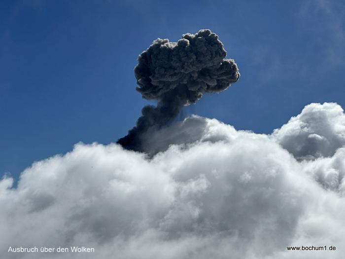 Wolken, nur bei einem Ausbruch sahen wir die Aschewolke über dem