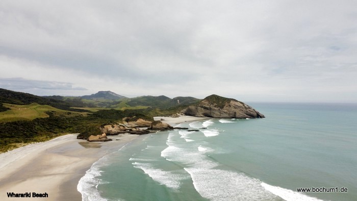 waren wir zur Mittagszeit auch da. Wenn man am Wharariki Beach