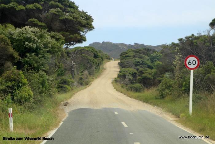 über nicht mehr asphaltierte Straße zum gut besuchten Wharariki
