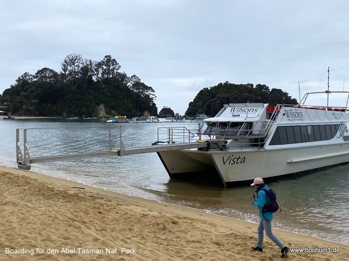 der Bootsfahrt, Totaranui. Wenn man während der ersten Stunde