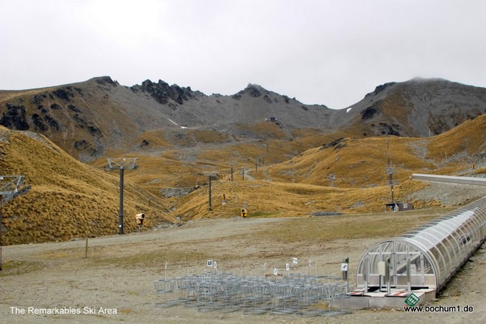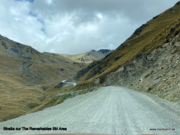 zur Serpentinenstraße hinauf zur The Remarkables Ski Area standen. |