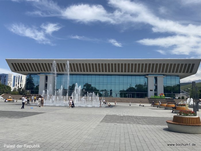 700 Meter zum Hauptplatz der Stadt, dem Abai Square. Dort ist der Palast der