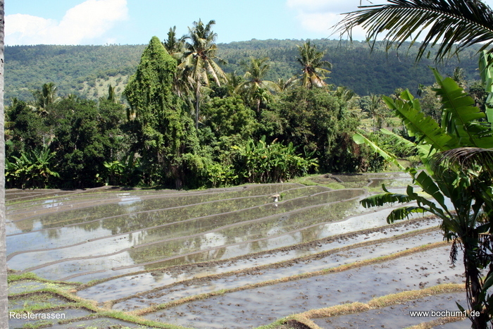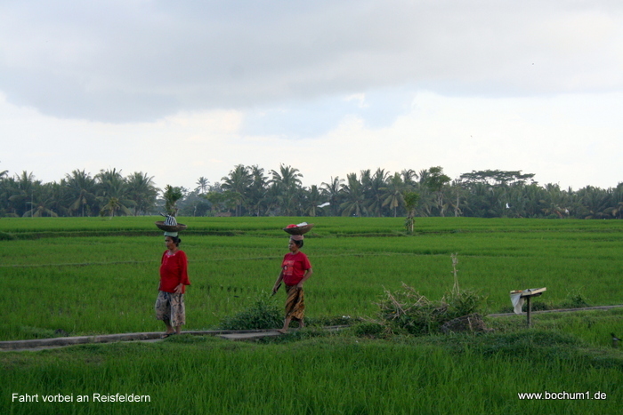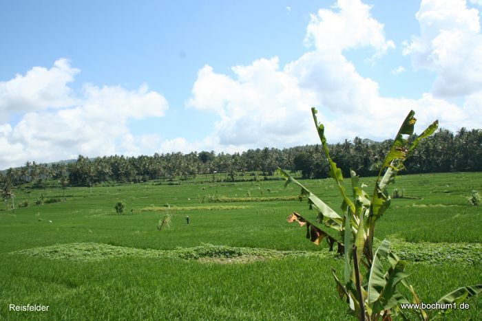 Reisfeldern (so wie man sich Bali vorstellt) zum Wasserpalast Tirta Gangga Karangasem bei Amlapura. Amlapura ist nebenbei