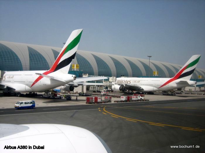 wir dort etwas tranken, rollten drei Airbus A380 vorbei, zwei von