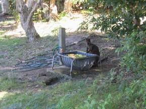 Sicherlich hörte ich die Vögel, roch den Wald, aber geschmeckt habe ich nichts… Gleich zu Beginn des Rundganges, sahen wir das erste frei lebende Känguru in unserem Leben, welches faul in einer Wassertränke stand. Gleich daneben in den Bäumen lärmten diverse Sittiche, welche man in Deutschland nur aus dem Käfig kennt. Der Discovery Track ist ein kleiner Rundgang durch den Wald, vorbei an einem Aussichtspunkt, mit einem wunderschönen Blick auf das etwa 300 Meter tiefer liegende Tal mit dem Cowan Creek, der aber aufgrund seiner Breite eher wie ein kleiner See, anstelle eines Bachs wirkte. Des Weiteren kommt man an einem kleinen Sumpf vorbei oder besser gesagt einem Ex Sumpf, dem das entscheidende fehlte, das Wasser. Am Wegesrand befinden sich diverse Hinweistafeln mit Erklärungen über die Natur, welche nicht unser gesteigertes Interesse fanden. Interessanter waren eher die ausgebrannten Bäume vom Waldbrand 1994, welche äußerlich stark verkohlt waren, aber immer noch leben, da sie Blätter trugen. Nach einer Stunde sind wir weiter und zwar nach Bobbin Head. Es ging über Serpentinen etwa 300 Meter tiefer und als wir unten ankamen, waren wir enttäuscht. Wir fanden Naherholungszentrum, mit großem Parkplatz, Schiffsanlegestelle, Hafen für Freizeitkapitäne, diverse Grillmöglichkeiten und reichlich Leute vor, anstelle eine Abgeschiedenheit und ursprüngliche Natur wie im oberen Teil des Parks, wo wir vorher waren. Zur Ehrenrettung des Parks sei erwähnt, dass Sonntag war und Sydney ja sehr nah ist. |