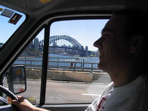 Da wir uns durch sechs Stunden Schlaf im Flieger noch recht fit fühlten, rief ich vom Flughafen die Apollo Vermietstation an, um die Übernahme unseres Wohnmobil in Australien anzukündigen. Eine Email kurz vor Abflug war dem vorausgegangen (man sollte nie unangemeldet beim Vermieter erscheinen, so stand es in den Unterlagen der Camperbörse.de, worüber wir in Deutschland das Fahrzeug gemietet hatten). Wir sollten dort in 30 Minuten erscheinen, dann sei ein Fahrzeug vorbereitet. Also zum Taxistand (in Deutschland warten die Taxen am Flughafen auf die Kunden, in Sydney war es umgekehrt – wir hatten in einer Schlange ca. 20 Minuten zu warten, bevor uns der „Einweiser“ ein Taxi zuteilte) und für AU$8 zu Apollostation, welche zehn Minuten entfernt war. Zehn Minuten, wenn der arabisch wirkende Taxifahrer den Weg auf abhieb gefunden hätte. Als Krönung fragte er mich noch nach dem Weg, bevor er sich bequemte, auf der Karte nachzusehen. Fing ja schon gut an…. Während ich mich vorne im Taxi sitzend, an den Linksverkehr gewöhnte, tauchte auch der Wohnmobilverleiher auf. |