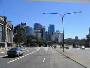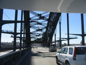 Zum Glück war dort kein anderes Auto und Susanne hat es gar nicht gemerkt. Da der Laden nicht sonderlich groß war, bzw. die Auswahl deshalb etwas zu wünschen übrig ließ, machten wir dort nur Grundversorgung und nutzen die Gelegenheit zu einem zweiten Frühstück auf dem Parkplatz. Dann kam das Schlimmste – mit dem Riesencamper 5,85 m x 2,10 m mitten durch Sydney. Um uns am ersten Tag nicht zu viel zuzumuten, hatten wir (oder ich ???) beschlossen, Sydney am Folgetag zu besichtigen und Stattdessen zum Ku-ring-gai Chase N. P. (25 km nördlich von Sydney) zu fahren und dort eine kleine Wanderung zu machen und es damit auch für den Tag zu belassen. Also führte der Weg über den Highway 1, mitten durch die Großstadt mit 4,2 Mio. Einwohner, vorbei an der Skyline, von welcher ich allerdings wenig hatte, da ich vollauf den Verkehr konzentriert war (so aufmerksam bin ich seit meiner Fahrprüfung nicht mehr Auto gefahren). Vor North Sydney kam dann der entscheidende Punkt der Straße, über die Harbourbridge oder durch den Harbourtunnel ??? |