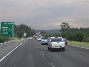 Also mit dem Wagen in den nahe gelegenen Stadtteil Darlinghurst zur Crown Street (10 Minuten vom Town Center aus), kurz ins absolute Halteverbot gestellt, da weit und bereit nichts zum Parken zu finden war und den Einkauf getätigt. Nun war Sydney abgeharkt (man kam sich stellenweise vor wie ein Japaner, welcher sich ganz Europa in 3 Tagen ansieht) und wir verließen die Stadt über schier nicht enden wollende Vororte über den Western Highway (vorbei an allen Gebrauchtwagenhändlern der Stadt). Der Beginn des Western Highways war eine mautpflichtige Strasse, sodass wieder AU$5,50 fällig waren. Das Ziel des Tages waren die Blue Mountains. Die ersten 40 km waren recht unspektakulär, bis es dann ab Glenbrook, über eine einspurige Landstraße (an den Steigungen auch zweispurig) bis auf fast 1.000 ünN ging. |