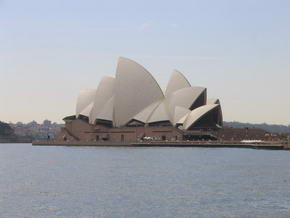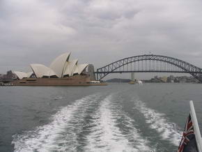 Bei der Gelegenheit fragte ich auch nach dem Preis, wo ich bei der Aussage AU$13/ Stunde, mächtig schlucken musste. Aber wir sahen keine andere Möglichkeit. Zuerst liefen wir zum Circular Quay, dem Startpunkt der Fähren und Ausflugsbote. Für $22 buchten wir eine stündlich ablegende und lt. Werbung 2h und 15 min. dauernde Stadtrundfahrt auf dem Schiff bei Captain Cook Cruises. Um es vorwegzunehmen, vom Ab- bis zum Anlegen waren es nur 1h und 45 min.. Wir hatten noch 45 Minuten bis zum Ablegen des Schiffes, spazierten durch Circular Quay und shoppten in den dort zahlreichen Souvenirgeschäften. Unser Fußweg führte weiter in Richtung Overseas Passenger Terminal, wo wir uns bereits im Viertel „The Rocks“ befanden, vorbei an alten und schön restaurierten Gebäuden, mit Straßencafes, bzw. exklusiven Restaurants. Von dort aus hat man einen hervorragenden Blick auf das Wahrzeichen Sydneys, die Oper. |
