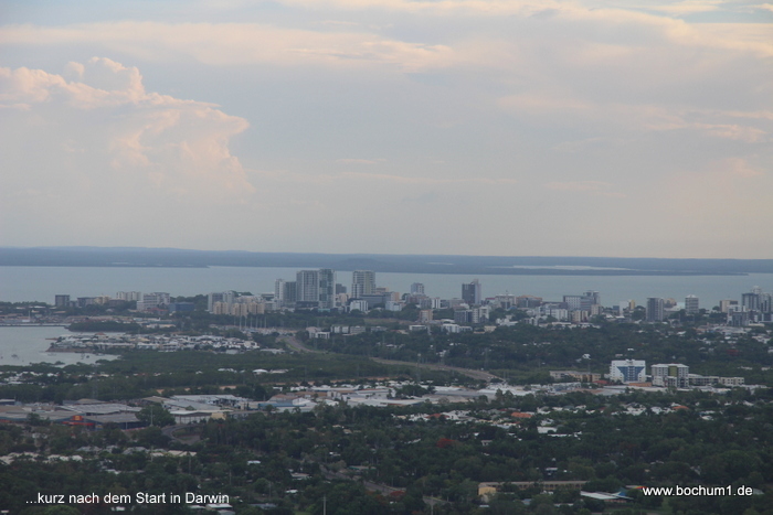 Pünktlich um 17:30 Uhr hoben wir (wie immer im Norden bei Darwin) in
