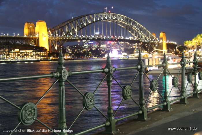 Ausblick auf die bunt angestrahlte Harbour Bridge genossen. Gegen 21