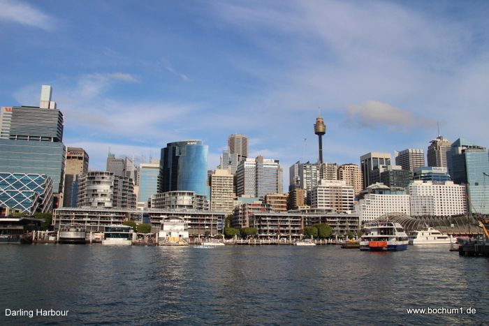 Füße ausruhten. Schließlich liefen wir um den Darling Harbour herum,