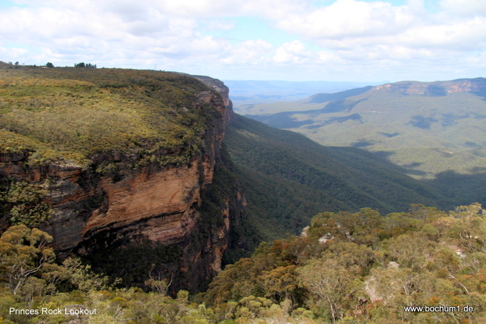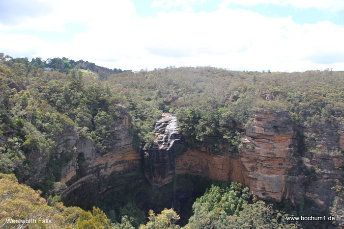 Straße zum Wentworth Falls Lookout gelaufen. Dort sah man zwar die