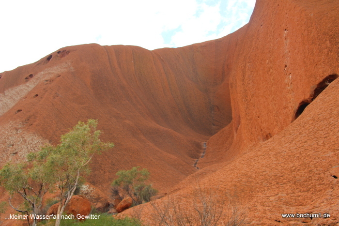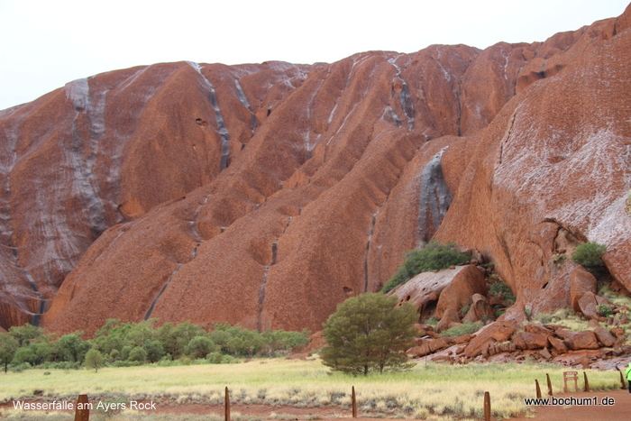 kleine Wasserfälle den Ayers Rock hinunter fließen, aber außer