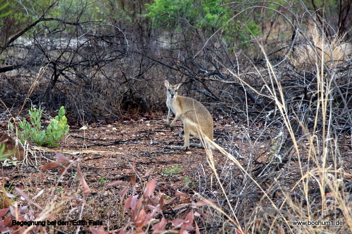 des Parkplatzes begegneten wir einem einsamen Känguru, dem einzigen
