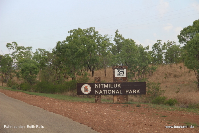 asphaltierte Edith Falls Rd. ab, die in den Nitmiluk N.P. führt und