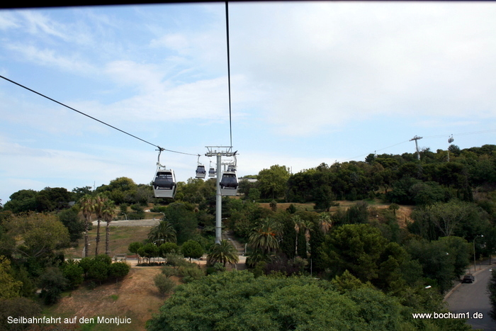 dort aus umsteigen eine der 2007 renovierten 6´er Kabinenbahnen des Teleferic de Montjuic, welche in 752