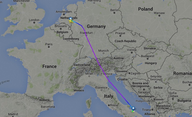 dann die Alpen über Meran, weiter westlich vorbei an Venedig und dann