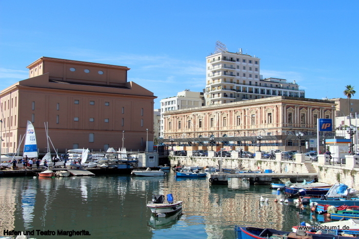 Margherita Theater, direkt am Meer. Dann über Theater-Vorplatz, der