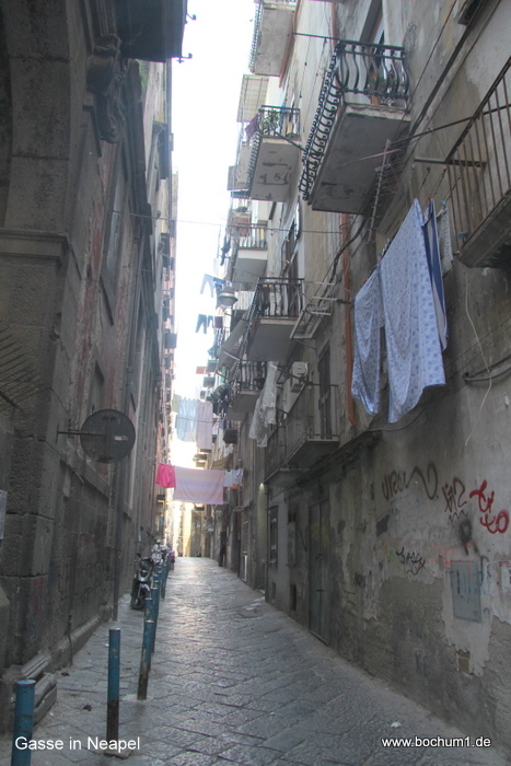 Gassen, etwas ärmlich und Wäsche im 2. Stock über der Gasse