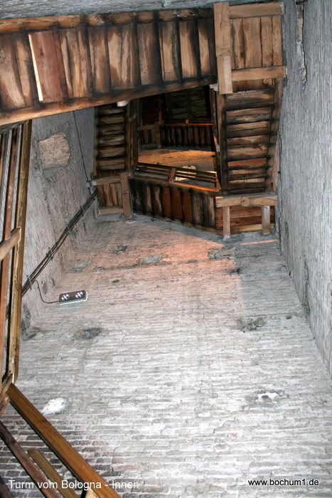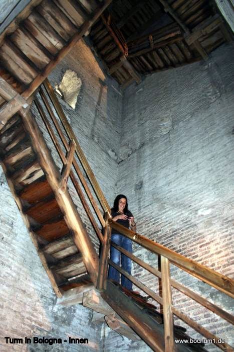 Turm hat keine Zwischenstockwerke und eine alte, hölzerne Treppe führt