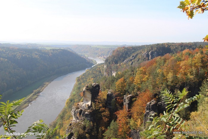 Blick über das Elbtal nach Nordwesten bis zur Bastei belohnt. Dann