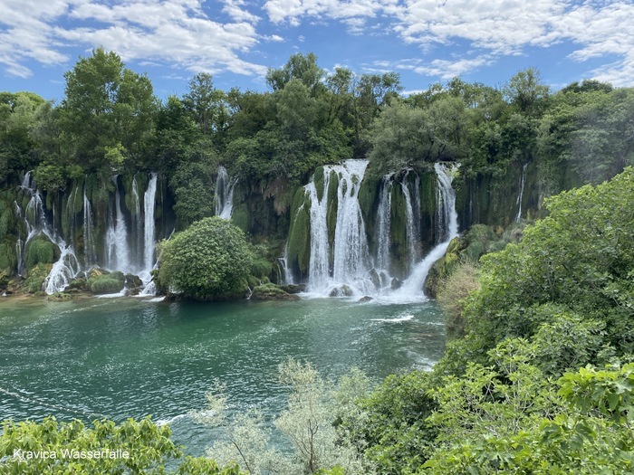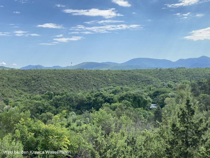 Landschaft zu den Kravica Wasserfällen. Die Häuser, welche wir auf