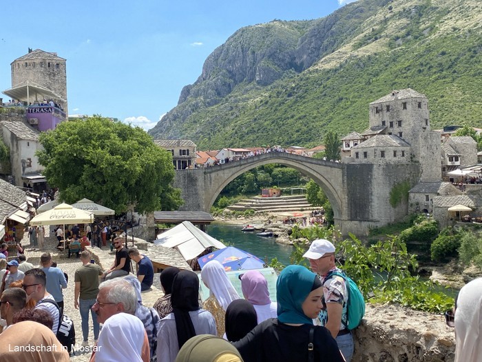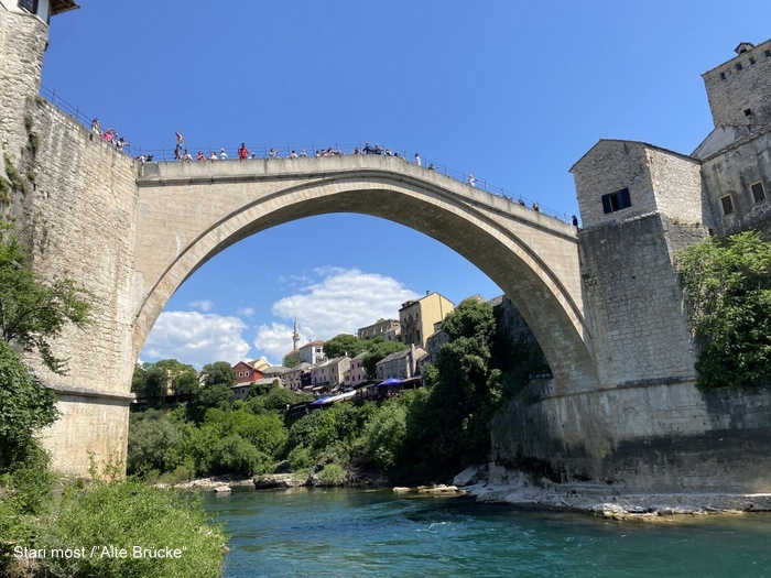 Mostar 5 Grad wärmer, mit 29 Gard Celsius hochsommerlich warm. Vorbei an