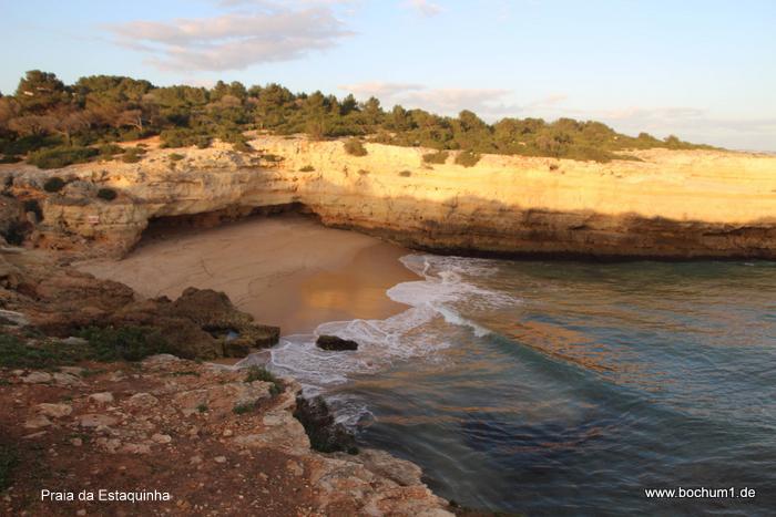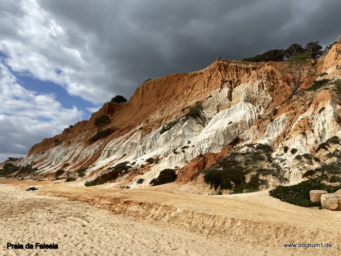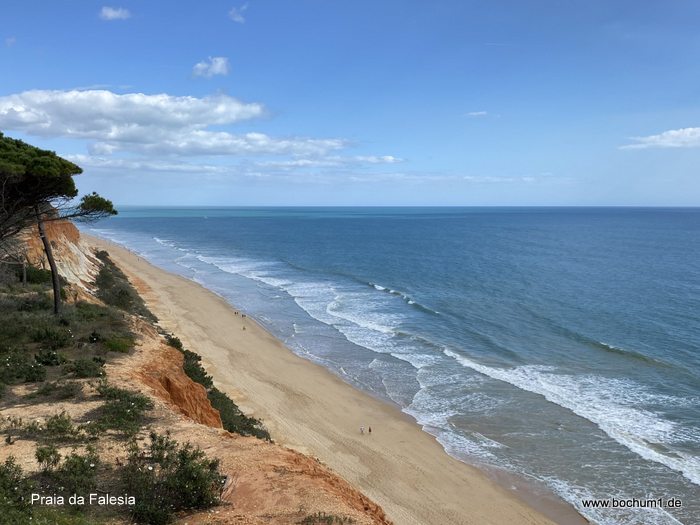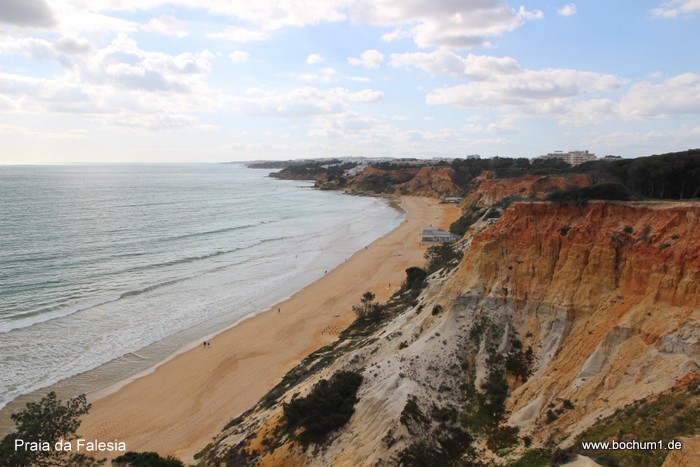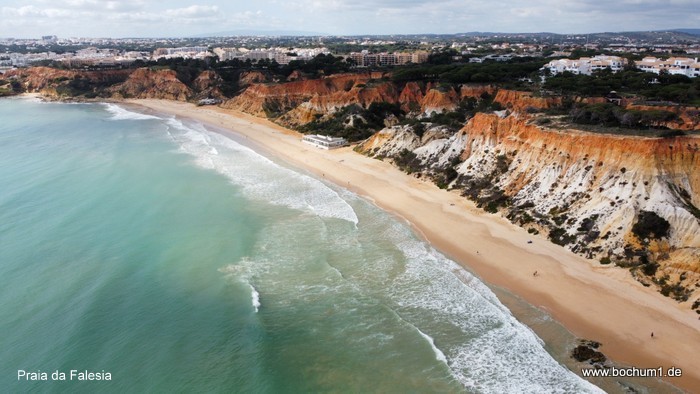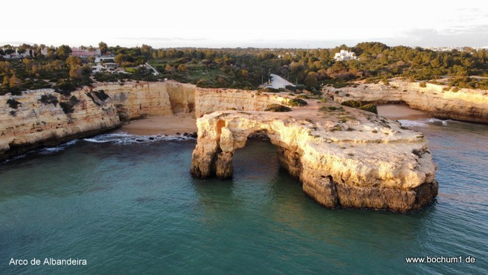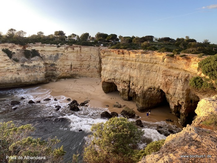 de Albandeira. Daneben ist der von Klippen umgebene Strand Praia de