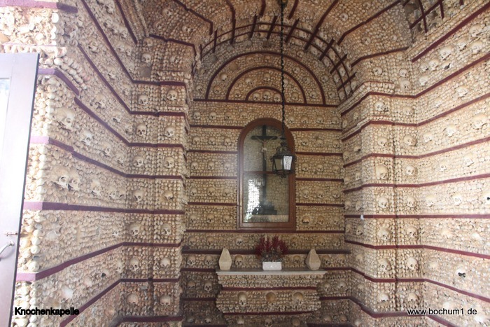 Hinterhof eine Kapelle gibt, welche aus 1.200 Schädeln und Knochen