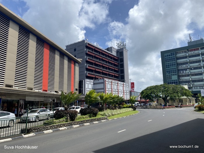 hätten, fuhren wir 1,7 km in den Stadtkern von Suva und parkten unseren