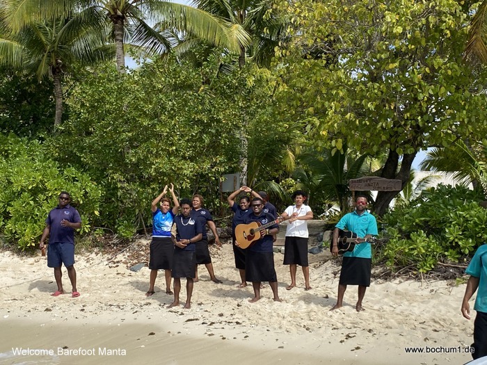 wir wieder mit dem typischen Südsee-Gesang vom Personal empfangen und