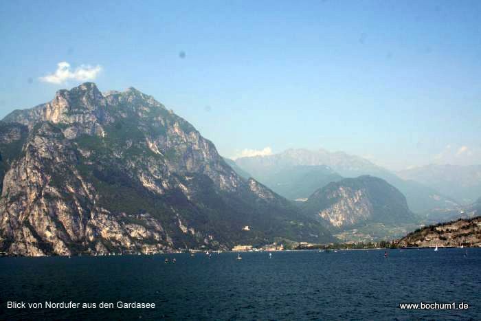 schönem Blick auf das gebirgige Nordufer und unserem Ausgangpunkt Riva