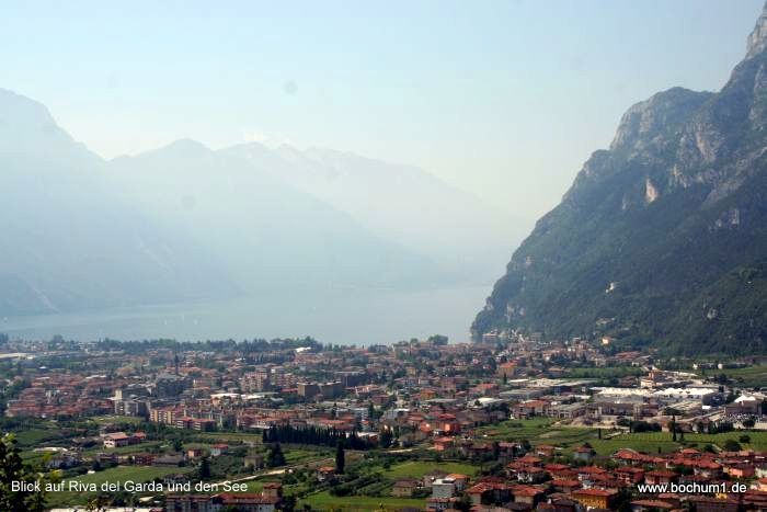 300 Meter Höhe auf Riva del Garda und den See. Leider im Gegenlicht,