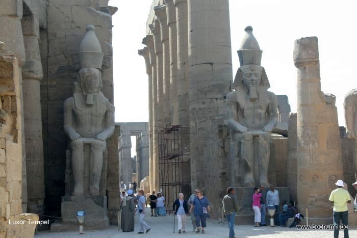 Wir bestaunten die zwei Kolossalstatuen der Hatschepsut am
