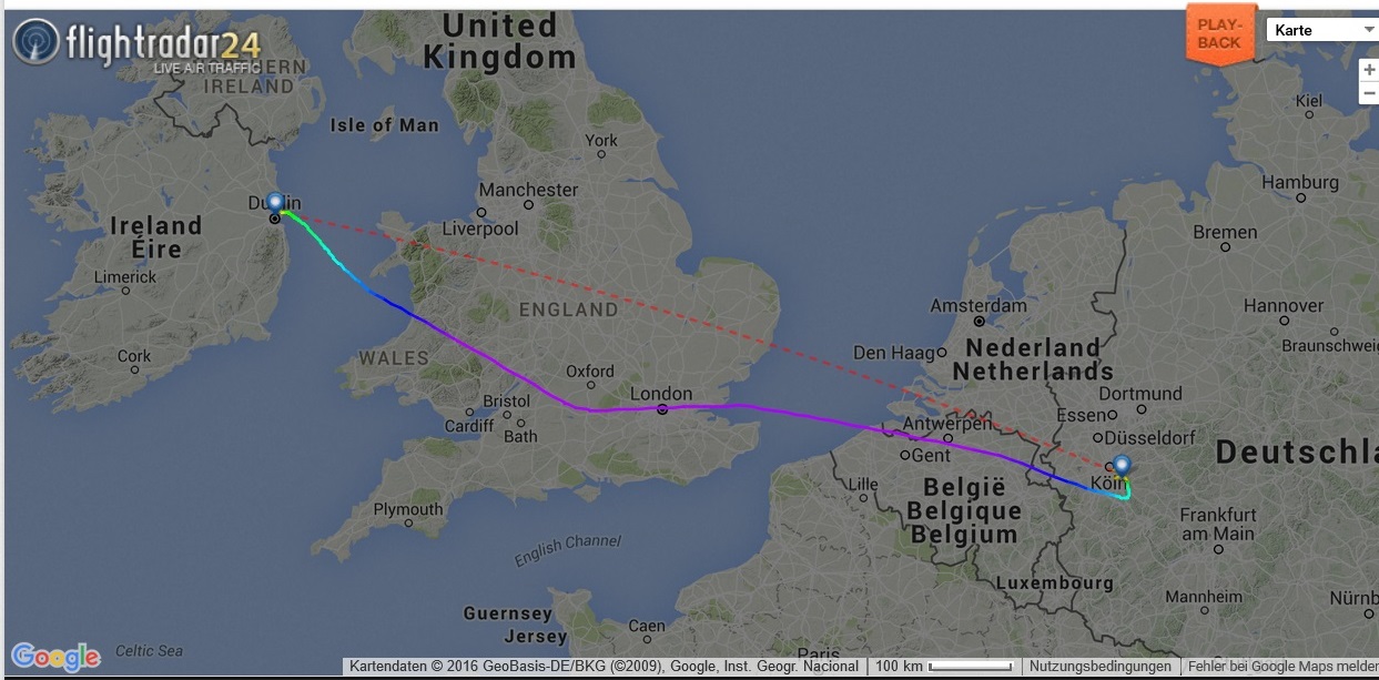 Wales und der Irischen See in 1 Std. 35 Min. zu unserem Ziel Dublin. |
