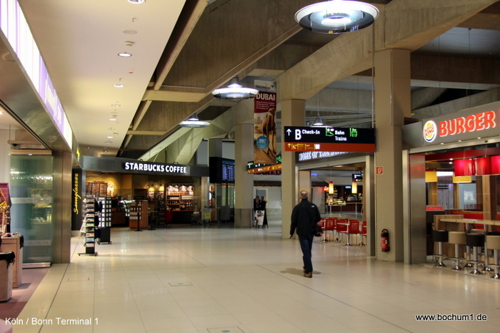 zum Boarding, die wir entlang der zahlreichen Geschäfte im Terminal 1