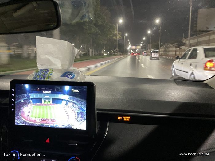 fuhr. Dabei schaute der Fahrer Fußball auf einem Monitor in der Mitte