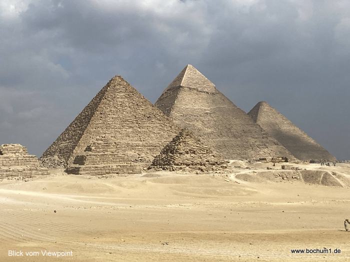 übersehen. Von dort sieht man alle 3 großen Pyramiden schräg seitlich