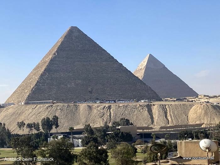 auf die Pyramiden, welche wir nun endlich im Tageslicht sahen. Vom Hotel