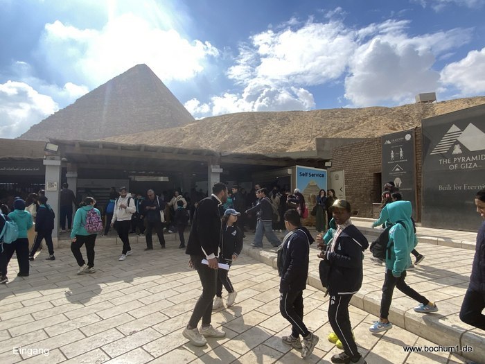 Damit standen wir auch gleich vor dem Eingang der Pyramide, aber wir