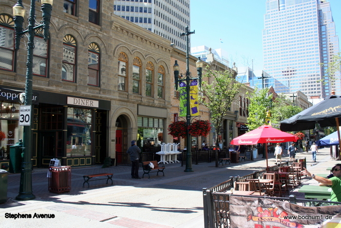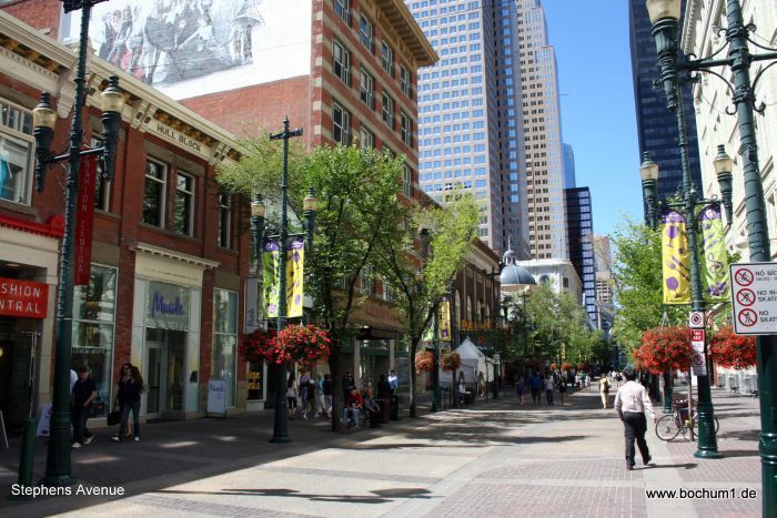 wir zur einen Häuserblock entfernten Stephen Avenue, die Einkaufsmeile /