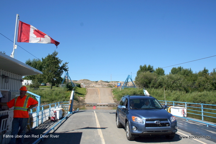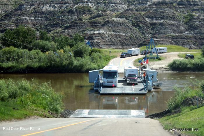 kleine, kostenlose Fähre über den träge fließenden Red Deer