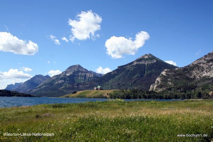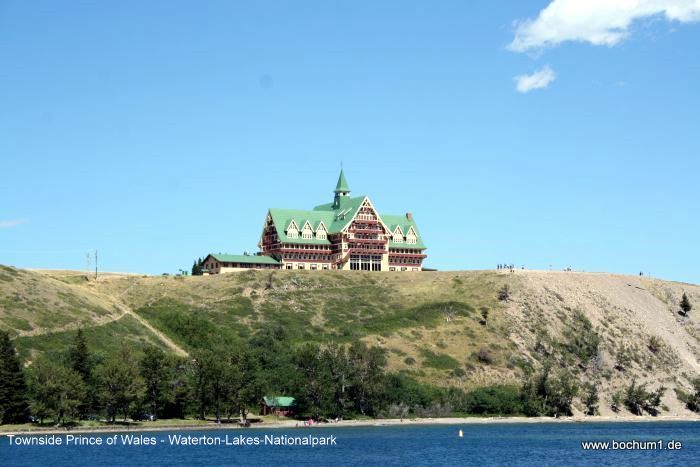 Parkeingang führt die Straße vorbei am kleinen, unspektakulären Lower Waterton