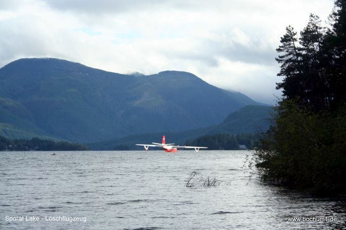 Und zwar ab dem Sporat Lake, wo ein Löschflugzeug auf seinen Einsatz