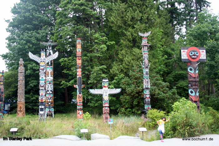 dauerhafte Ausstellung von 8 Totempfählen mit den Wappen der